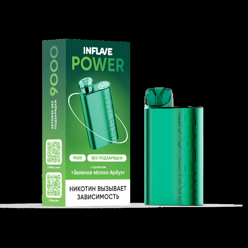 Электронная сигарета INFLAVE POWER 9000 затяжек Зеленое Яблоко Арбуз - купить в Приморске
